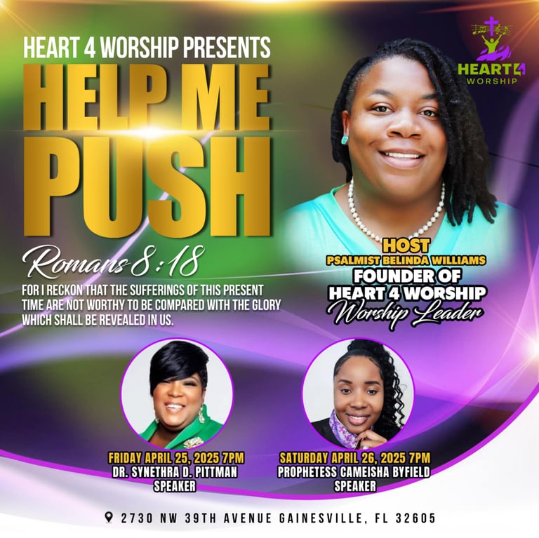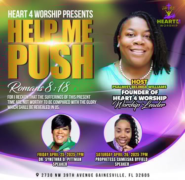 I'm Minister Belinda Williams, the founder and creator of Heart 4 Worship, and I'm thrilled to welcome you to our official website. At Heart 4 Worship, our mission is to break down barriers between who you were, who you are, and who you are becoming. We are dedicated to fostering personal growth, empowerment, and positive transformation.